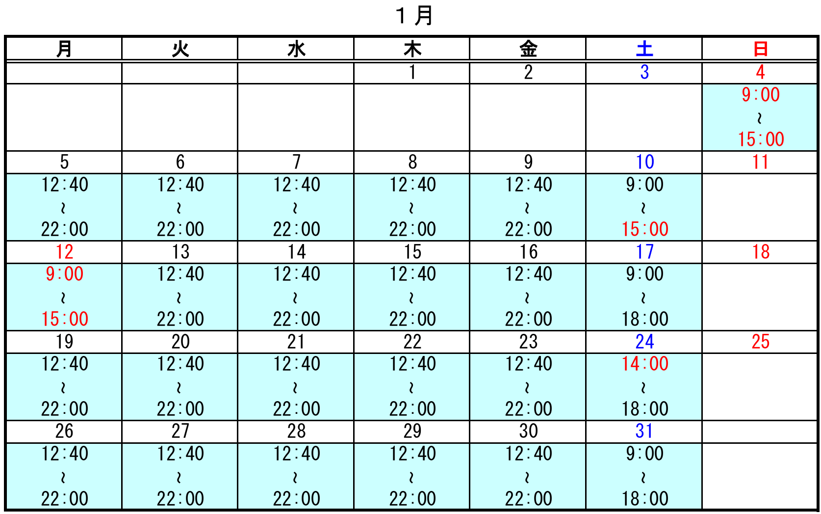営業時間:平日12:40~22:00 土曜日9:00~18:00